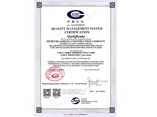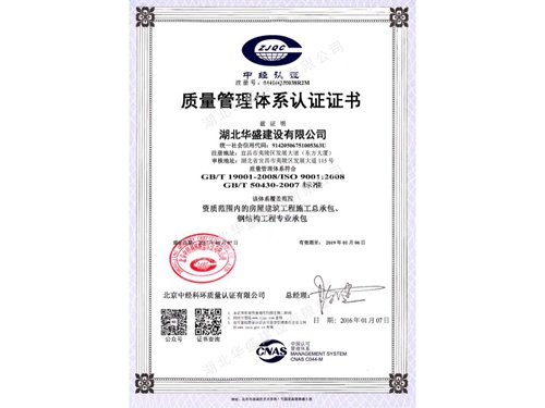 质量管理体系认证证书
